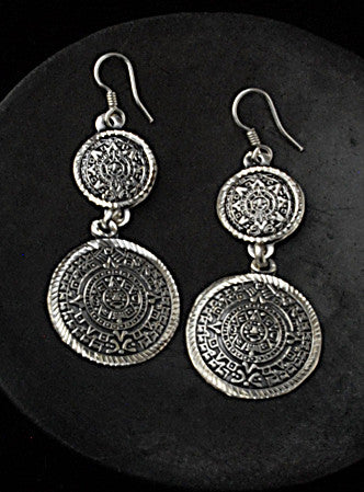 Buy Sterling Silver Aztec Calendar Stone Earrings on Heavy